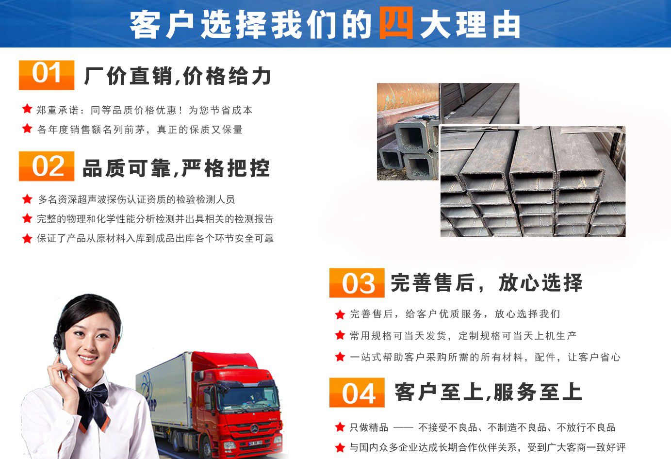 無錫盛灝特鋼有限公司長期銷售Q355B方矩管,鍍鋅方矩管,大口徑方矩管,厚壁方矩管,無縫方矩管等各種方管產品!產品廣泛應用于鋼結構建筑(鋼管混凝土、管樁、管桁架,橋梁、海上作業平臺、港口碼頭建設、電視通訊鐵塔、電力鐵塔等鋼結構管)。壓力管道(石油、天然氣、煤漿等輸送)、機械制輥等領域?! 」咀詣撧k以來,一直堅持“誠信合作,共同發展”的經營理念?! ∫恢币詠砦覀儽局耙哉\相待,以信為本,互利互惠,共同發展”的長期方針,充分發揮現貨資源優勢為您提供“可靠的產品、過硬的質量、完善的服務”,歡迎廣大新老客戶前來洽談業務?! 」疽浴爸琳\至信,雙利雙贏”為根本宗旨,堅持科技興企的發展策略,恪守商規,創新進去,贏得聲譽,贏得了市場,得到了社會各階層的認可。公司以雄厚的實力、可靠的質量、儲存鋼管門類齊全、庫存量大之優勢,本著守法、守信、創新的理念,打造精品,發展鋼管多元化品種,滿足客戶各種需求,以低廉的價格、熱情的服務面向國內外客戶,歡迎鋼管界同仁加盟!我們為客戶提供周到的服務 ! 公司為客戶提供以下服務 服務三保: 保證質量、保證時間、保證數量。 服務宗旨: 雄厚的實力、優質的產品、低廉的價格、周到的服務?! ∨慵鏍I,一支起定。...